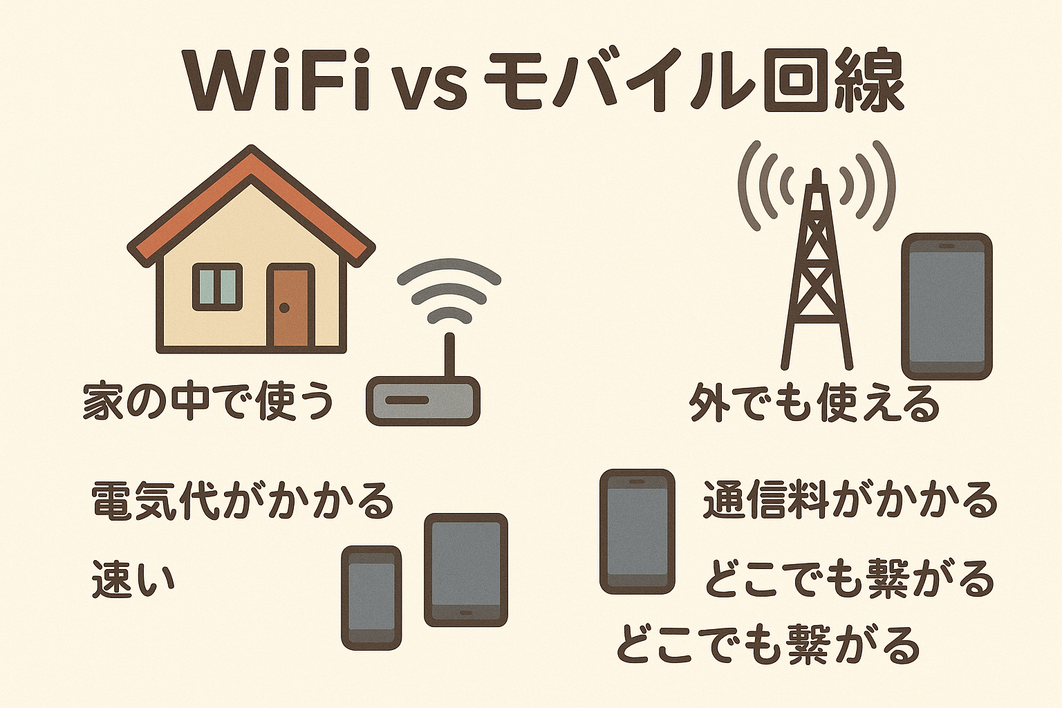 | 項目 | Wi-Fi | モバイル(携帯)回線 |